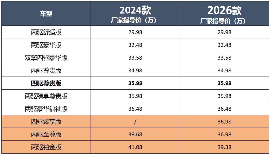 2026款的官方指导价为29.98万-39.38万,动力均为2.5L油电混动,采用7座布局,分为两驱和四驱。小编在店端打听到,不少网友关心的入门版,即30万以下的【两驱舒适版】,2026款也依然保留,并未停售。