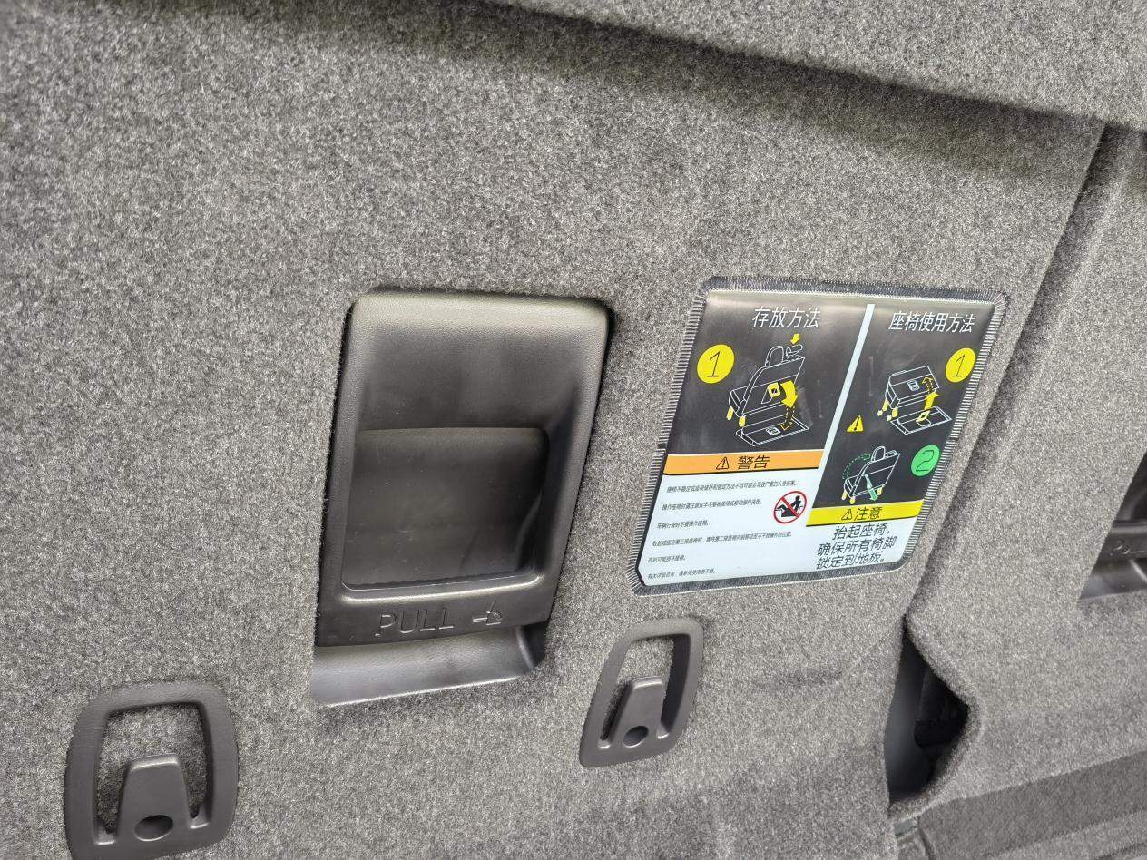 三排座椅的收放必须手动推拉,两个动作步骤可以完成,不算很麻烦,但是要注意力道和角度。这个拉环除了辅助折叠推拉,还负责调节三排座椅靠背。三排座椅推起后,会腾出下沉式的后备厢空间,可以放下多个行李箱、折叠儿童椅等大件物品,即便满员满载跑长途也能一车搞定。