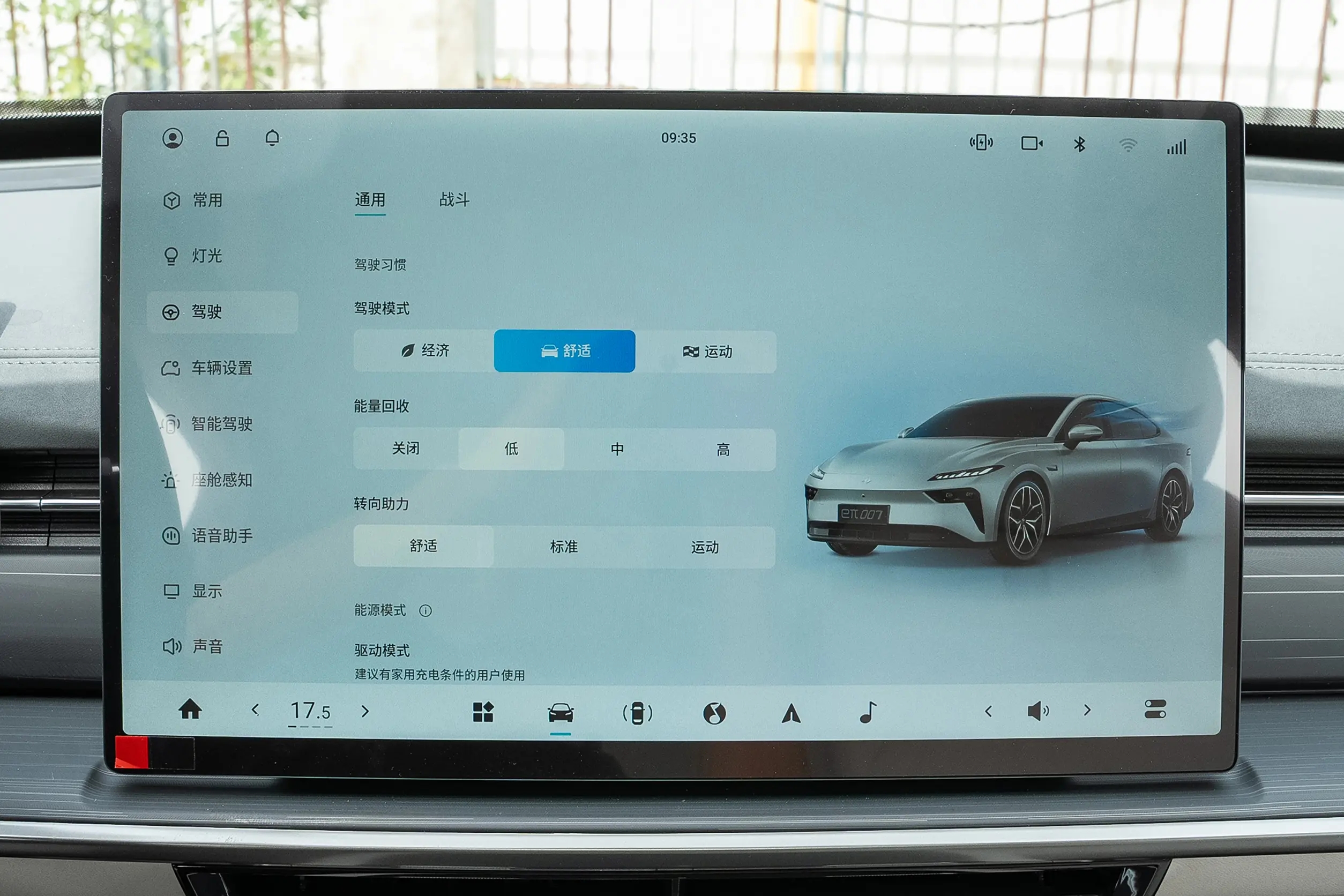 既然是新能源车型,eπ007的动力续航显然也是重点。该车有增程和纯电可选,其中,增程车型在CLTC工况下纯电续航里程为230千米,综合续航里程可达1230公里。而且在油耗方面,WLTC百公里综合油耗仅0.56升,馈电状态时百公里油耗也仅仅只有4.73升,还能适配92号汽油,经济性较为良好。并且支持快充,只要15分钟快速充电,便可以给车辆增添足够行驶200公里路程的电量,非常方便。