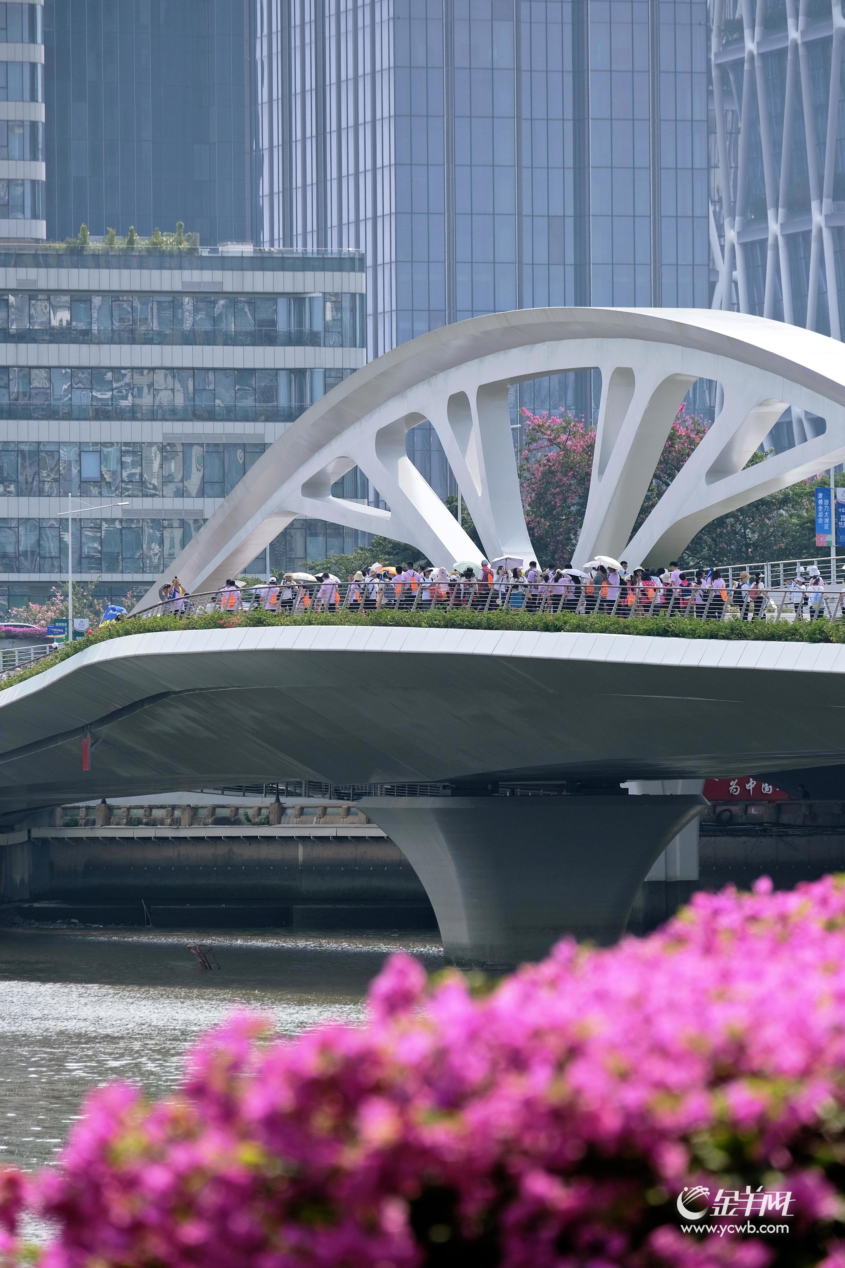 自国庆中秋假期前黄埔涌步行桥落成后,市民游客无需绕道,即可继续徒步欣赏珠江美景。不仅节省了“腿力”,黄埔涌步行桥优美的桥身,也让其化身为珠江美景之一。