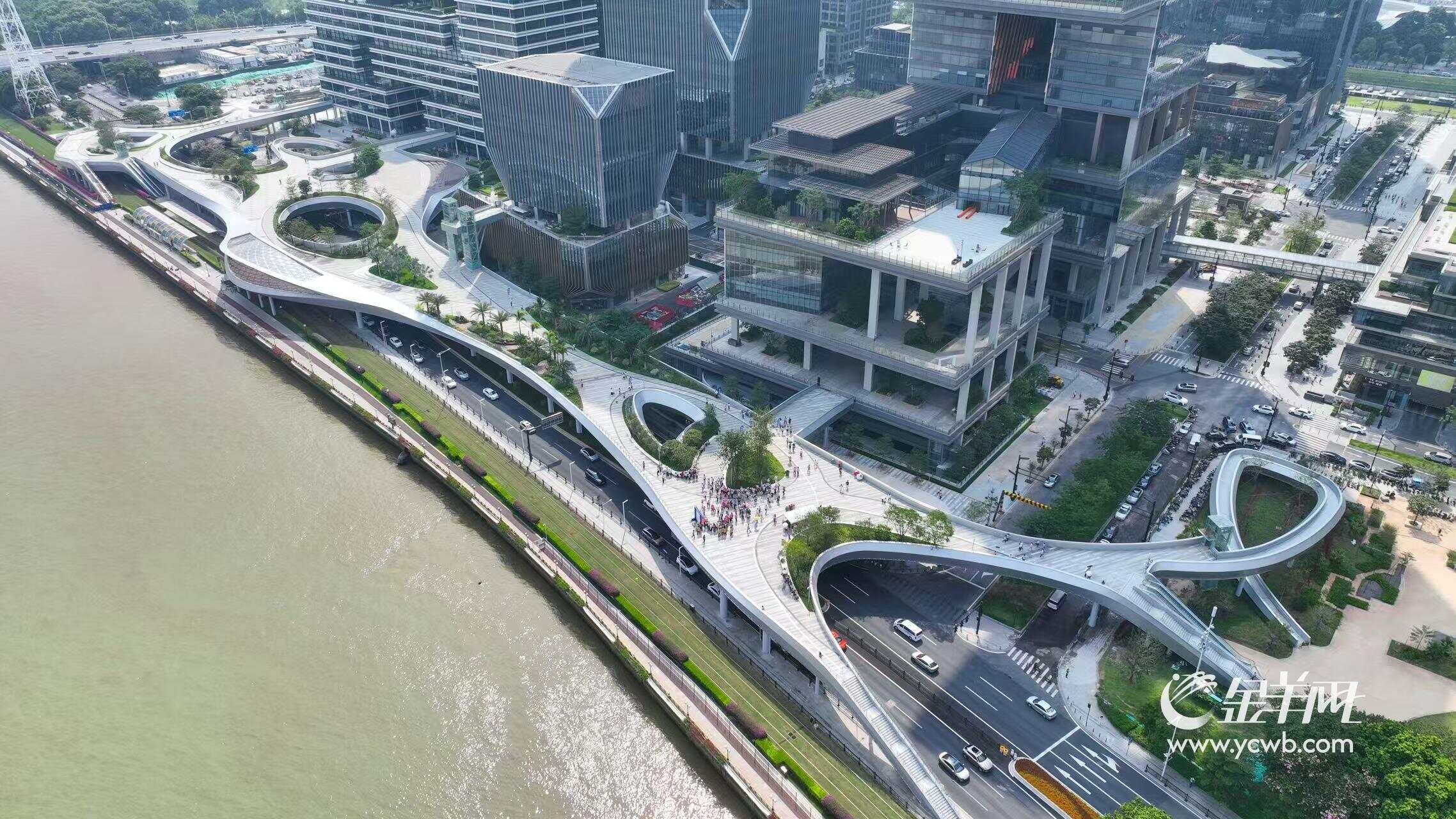 记者获悉,琶洲西区滨江立体人行桥连通琶洲西区多座商务楼宇,不仅便利游客到江边赏景,平日也方便上班一族步行到达各楼宇。市民游客不仅能在琶洲西区感受到“老城市新活力”,还可通过滨江立体人行桥感受到“老城市新便利”。